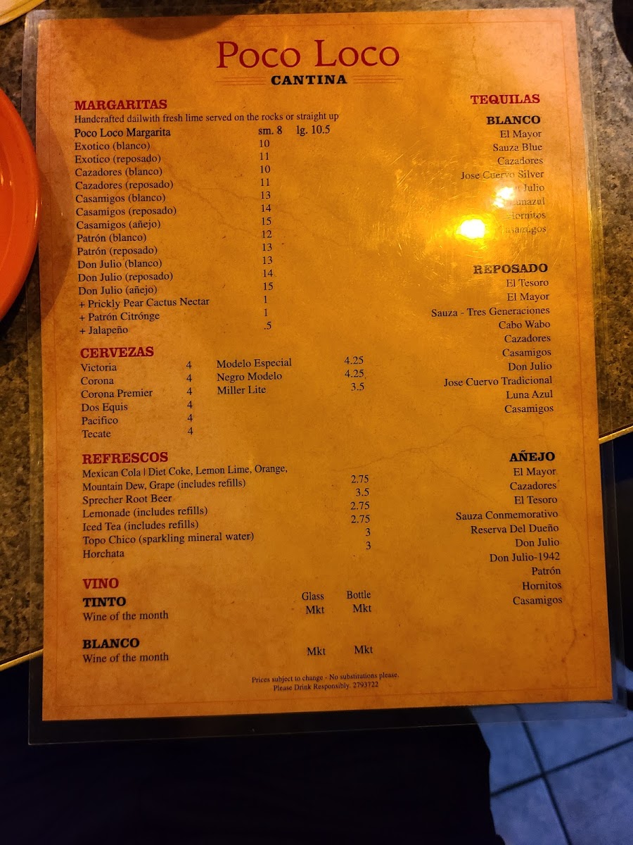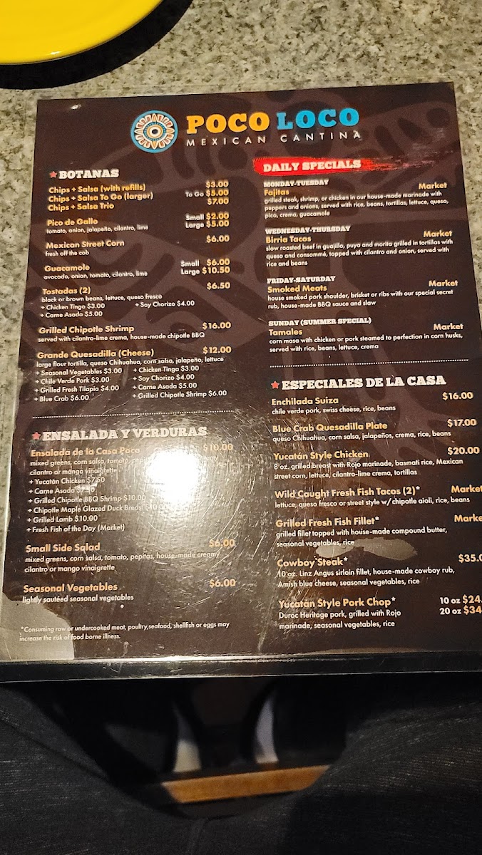 Overall, Poco Loco's menu is a celebration of Mexican flavors, offering something for everyone from light snacks to more filling meals. Whether you're stopping in for a quick bite or a leisurely meal, the diverse options and refreshing drinks make it a fantastic spot for a casual yet delicious dining experience.